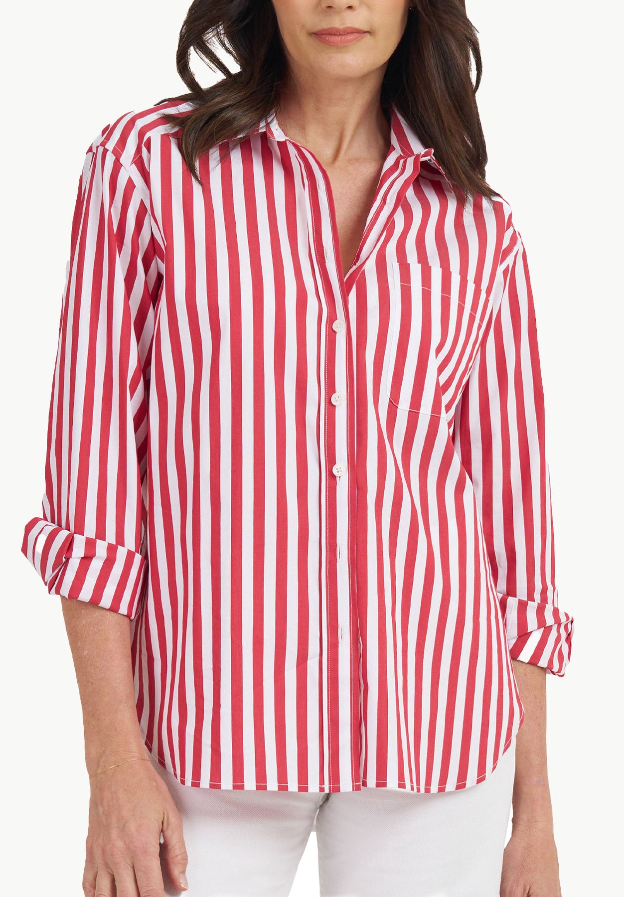 Our crisp worry-free red stripes shirt in stretch cotton resists wrinkles for a go-to everyday errands