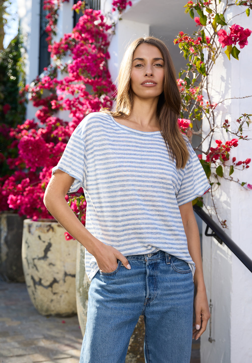 Teena-Linen Indigo Stripes T-Shirt