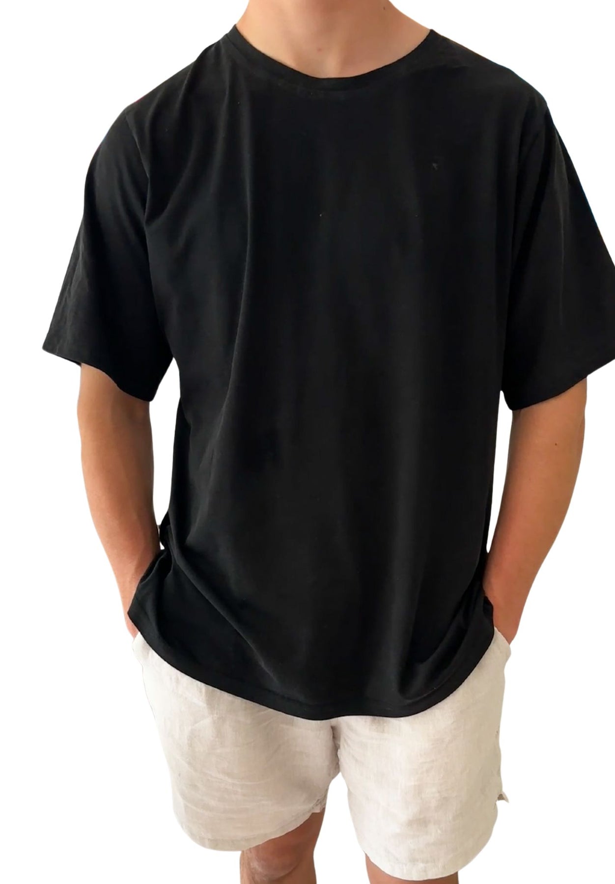 Cut from premium 200gsm cotton jersey, it has a weight that feels considered, never flimsy. The silhouette is softly oversized with drop shoulders and a classic crew neck, giving it that effortless 90s ease without looking careless.