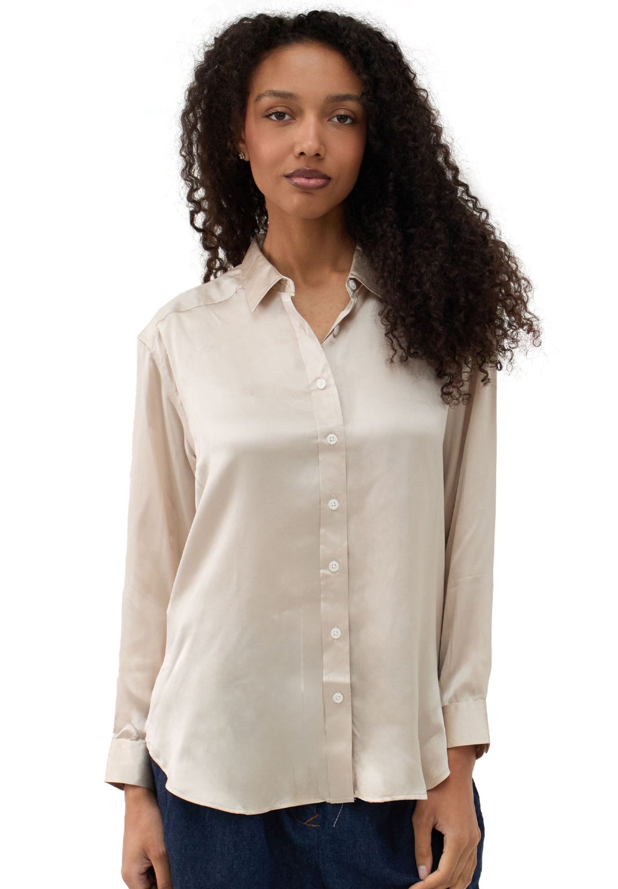 Step up your game with this Oversized silk shirt in Mushroom Gray